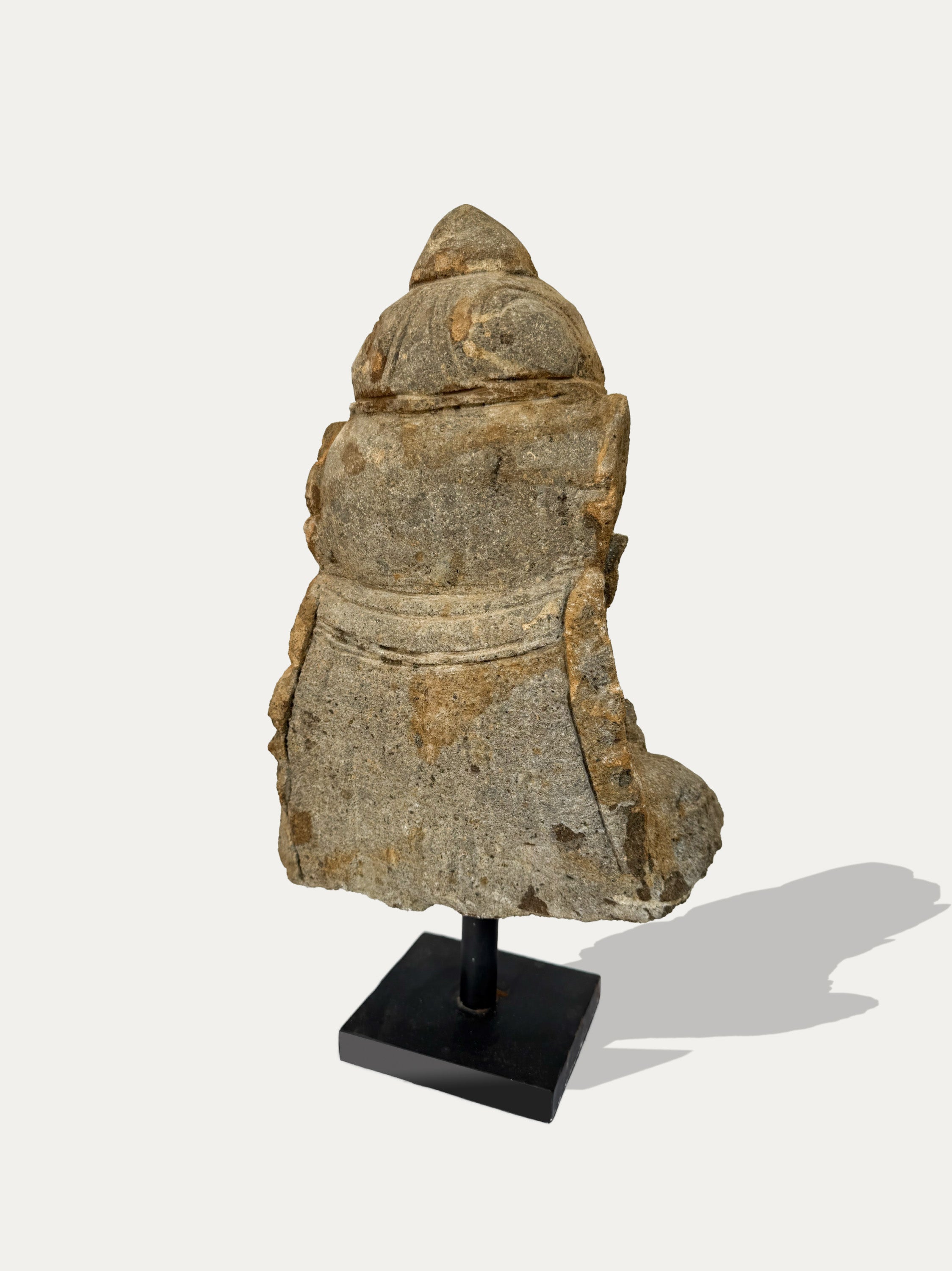 Cette statue unique met en valeur la beauté naturelle de la pierre, célébrant ses imperfections organiques. Elle est accompagnée d'une histoire imprimée dans une belle enveloppe, ainsi que d'un socle en métal noirci fabriqué à la main. Le socle lui-même est d'une authenticité discrète, présentant de subtiles irrégularités et pouvant développer une patine naturelle au fil du temps.